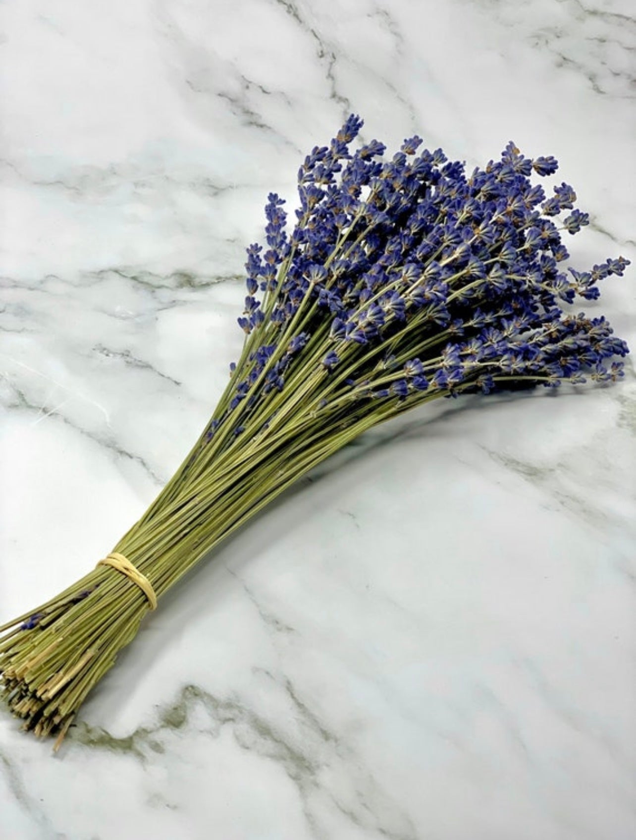 Beautiful Lavender bunch with approximately 100 stems of dried english lavender that are around 14 inches in length. It is grown right here at home in North Carolina giving it a beautiful purple hue and a smell that will truly make you happy. Our stems are dried for maximum aroma released and it also helps keep them lasting for months!